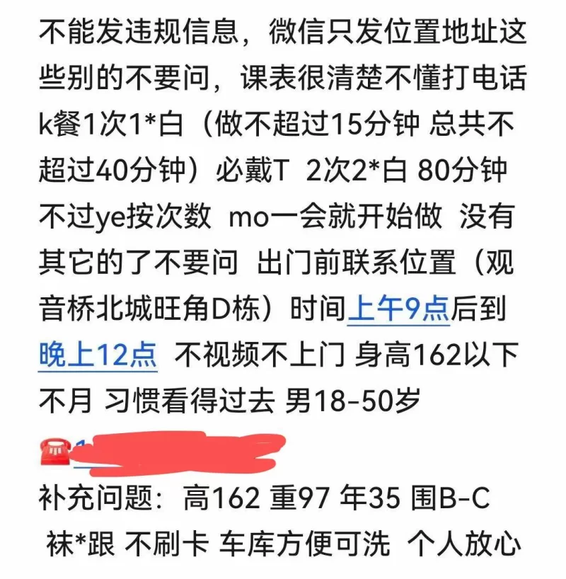 昨天晚上,也就是7月27号,我和我一个兄弟伙在石桥铺科园四路的福玖火锅(以前的秦妈火锅)吃完饭,都喝得二麻麻的,然后去找小姐是必须的了,刚开始本来以前有个兄弟伙说科园六路的,仁爱医院旁边有个阳光水岸洗浴里面有388的大全套,里面妹妹很乖,索性马上直奔那点,结果意外只有一个帝都洗浴,而且更郁闷的是都是老堂客,而且还给我说没得那些得,明显是忽悠我们撒,感觉我们不像是来嫖的一样,既然老板都说没得了,那我们就只有换地方了。好,我们找,到处看了看,都没什么合适的了,而且去以前的金美木桶浴,居然关门了,不知道为什么,真是大大的遗憾。我提议,算了,我们就到陈家坪车站那边去打一炮,然后直接回家睡觉,以前我在我们威客网上看到过的,有狼友介绍过,还没去验证过,今天就去看看。在那边就只有一家,比公路低一层,旁边有一小段石梯下去。直接进去,就两个小妹坐在那,一个穿的黑色连衣裙,身材还是高挑,就是一点,胸部太小,一个背对老子在看电视,看不清楚,当时头脑就想,反正就是干一炮就回家睡觉,都不在乎了,就是那个黑色连衣裙那个了。一问价格,80快餐,我问有没有其他服务还有包不包夜之类的,我当然要问清楚点,好回来在我们网上交作业。回答是,就快餐,直接做,包夜都没得,80,还不少。靠,算了,来都来了也不想走了,我兄弟伙就带着另外个妹,我就直接要了黑色妹。炮房还不是在门市,还要拿钥匙往下面走点,一层,进去还听到隔壁一群男人在搓麻将,我靠,而且,楼房应该是要拆迁的那种了,以为那点在修路,更是烂扎扎的。进去一看,一个房子隔成了两个小炮房,而且空间很小,那妹儿给我把弄了几下JJ ,JJ 也是立马挺起,虽然有人说喝酒了会更持久,但是我觉得喝酒了,JJ 更容易遭,我是这样,不晓得各位看官狼友是不是这样。好,完了,直接插,期间想亲一下妹儿的,她居然躲避,还问我喝了好多酒,几次想亲都被拒绝了,我想,我操,什么态度,没心情了,两下搞完走人。我只想告诉大家是,妹妹是年纪小,就是服务不好,价钱还能接受,因为现在在哪点快餐都是150了,而且年轻点的妹妹都少。我把我的寻觅经历再次分享给各位狼友,谢谢。
