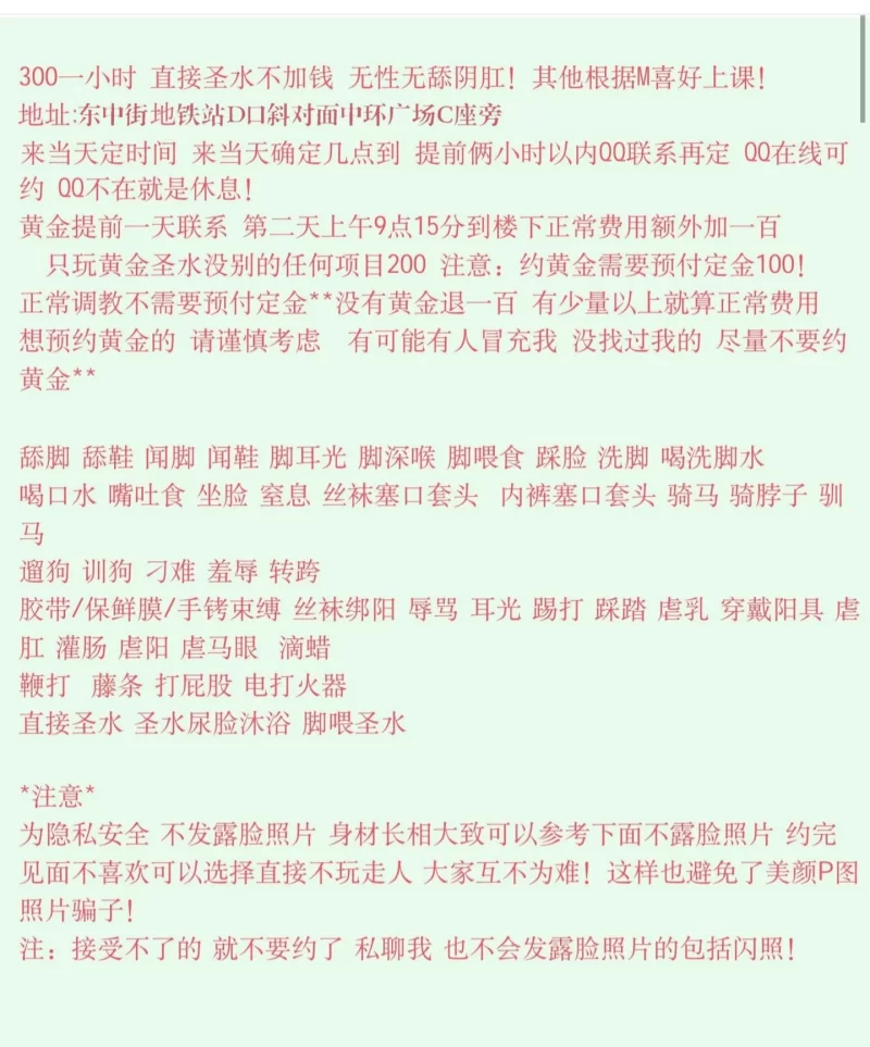 这个帖子主要是发现有些失效的地方 和各位狼友说一下 1.就是站前小胡同里面 我29号走了一圈也没有看见可以进去的地方 2.之前有狼友说的汗城汤泉里面我也去过了 技师都换了 也没有之前帖子里面说的6号 而且按摩手法也一般 3.29号我也去了惠安小区旁边那个小店 里面也没人 大姐说都没人也是白跑一趟 我不知道是最近严打还是什么 反正昨天挺扫兴的